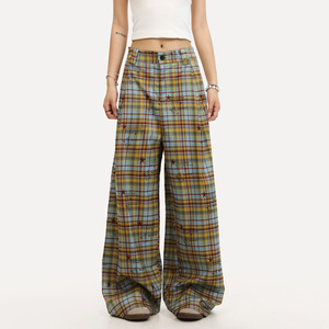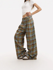 アメリカンレトロなコントラストストライプグラフィティワイドレッグカジュアルパンツ女性のための春と夏の新しいデザインルーズドレープパンツトレンディ