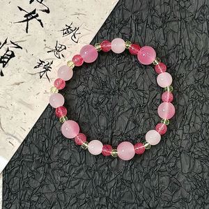 ピンクの爆発的なビーズの花の蝶のブレスレット