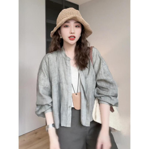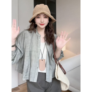フレンチスタイルラウンドネック長袖シャツ2025新しい女性の夏のルーズショートスタイル薄い日焼け止めトップ