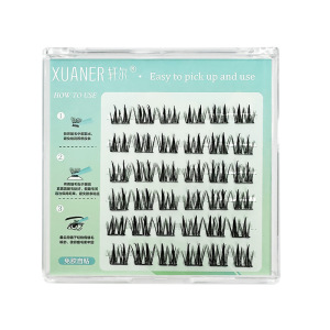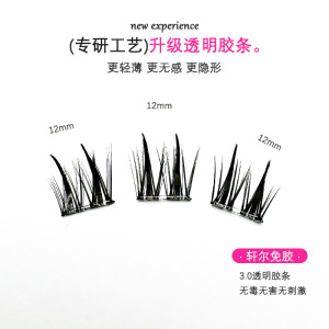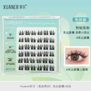 玄爾接着剤不要つけまつげ、ダブルチップ麦穂型分割式、取り外し不要、濃密バービーヘア、平度市燕尾
