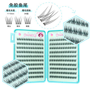 Milin Sweet Cloth 20列の接着剤不使用のフィッシュテール自己粘着デイリーフレンチシングルクラスターまつげ、ナチュラルで怠惰な初心者向けのフォトジェニック