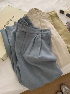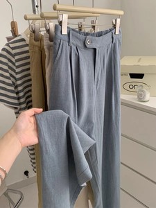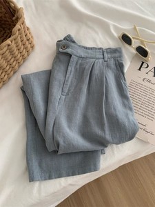 CHAOレベルのオススメ!ヘイズブルータイセニウムリネンワイドレッグパンツ女性の夏の新しいスタイルのルーズストレートフロアレングスパンツ