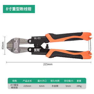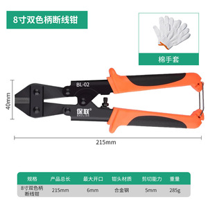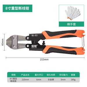 頑丈な工業用ボルトカッター 8inch (手袋付属)