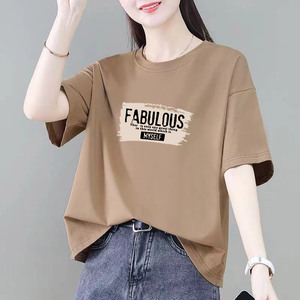 小柄な綿半袖Tシャツレディースゆったり夏新作カジュアル大きいサイズファットmm痩身ボトムシャツトップイン