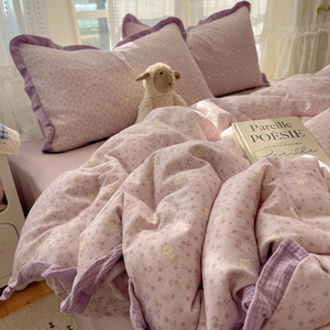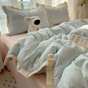A类母婴级纯棉皱皱纱花边四件套超软ins法式风全棉学生宿舍三件套