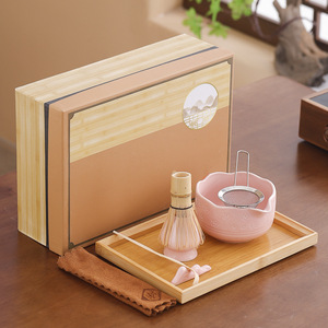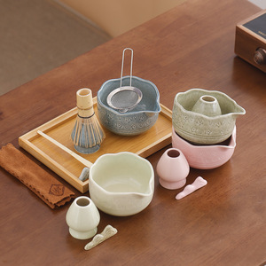 日本製のシンプルな抹茶茶碗、抹茶用陶磁器茶器、茶筅、竹抹茶ブラシ、百本立抹茶セット