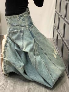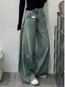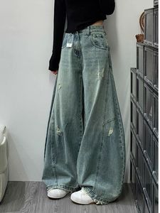 アメリカンハイストリートレトロワイドレッグジーンズ女性のための 2025 夏の新しいハイウエストリッピングルーズシミターモップパンツ