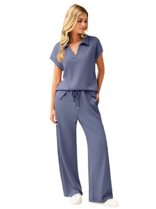 Amazon 2025 新作夏ヨーロッパとアメリカのクロスボーダーレディースカジュアルスーツトップスとパンツワイドレッグパンツ 2 点セット