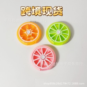 クロスボーダーラウンドポータブル 1 週間小型ピルボックス 7 コンパートメント回転ミニプラスチックピルボックスキャンディディスペンサー