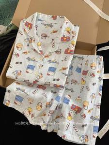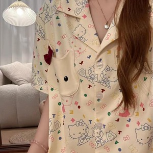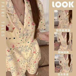 韓国風キャンディーカラー KT 猫かわいいスタイル漫画パジャマ女性のための夏の新しい大きいサイズ快適なカーディガン半袖ホーム