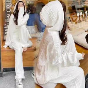ニッチなネットセレブのツーピースの新しい女性のフード付きスウェットシャツ、ゆったりとファッショナブルな香港スタイルのカジュアルでシンプルな無地のレイジースーツ
