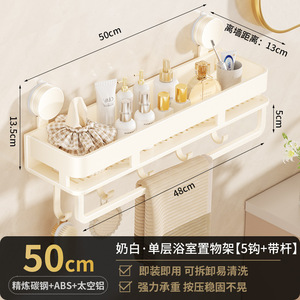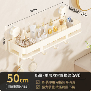 【吸盤-クリームホワイト】単層50cm+フック5個+タオルバー1個