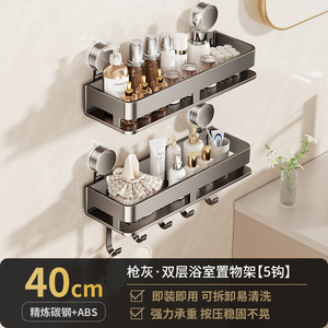 【吸盤・ガンアッシュ】二層 40cm+フック5個+タオルバー1個