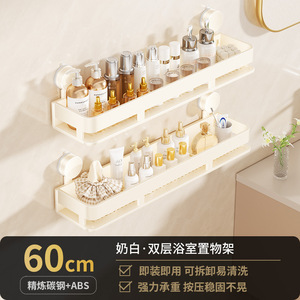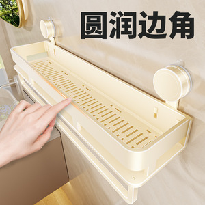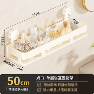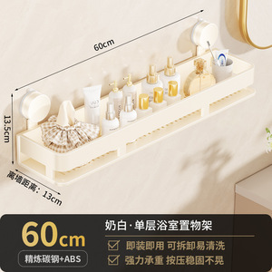 乳白色の吸盤収納ラック、パンチフリーのバスルーム洗面台、化粧品トイレ壁掛け壁収納ラック