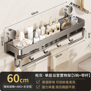 [吸盤-ガンアッシュ] 単層 60cm+フック5個+タオルバー1個