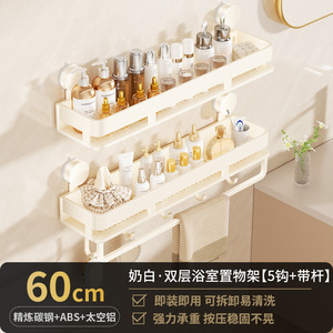 【吸盤-クリームホワイト】二層式60cm+フック5個+タオルバー1本
