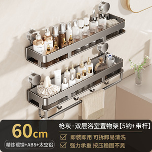 【吸盤・ガンアッシュ】二段60cm+フック5個+タオルバー1本