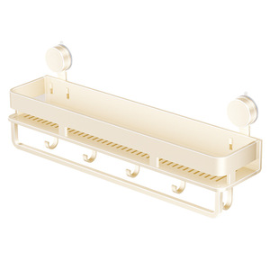 【吸盤-クリームホワイト】二層 40cm+フック5個+タオルバー1個