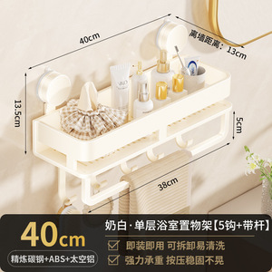 【吸盤-クリームホワイト】単層40cm+フック5個+タオルバー1個