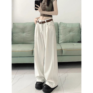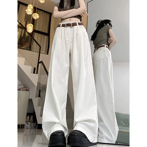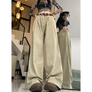 卡其色阔腿牛仔裤女夏季新款高腰宽松显瘦垂感拖地直筒裤子潮百搭