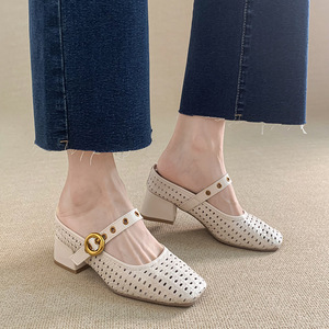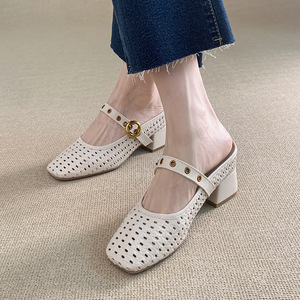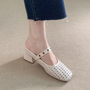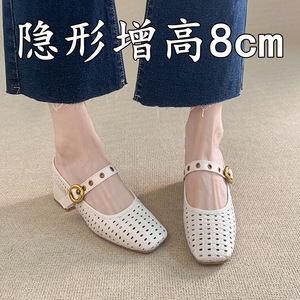 内側高さ8cm増加2025夏新スタイル片足編み込みつま先ハーフスリッパレディースアウターシングルシューズメリージェーンシューズ