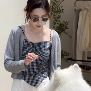 フレンチスタイルのシンプルな女性服2025新作人気日焼け止めカーディガンサスペンダー年齢軽減ワイドレッグパンツ3点セット