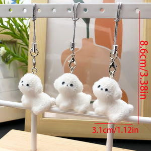 植毛白動物子犬ビション携帯電話ロープ-7.1g