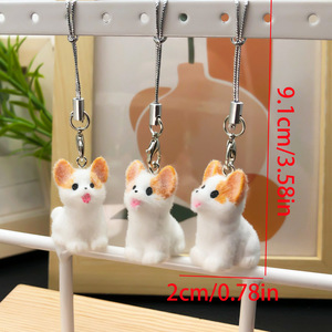 植毛白動物子犬コーギー携帯電話ロープ-6.8g