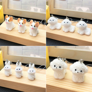 樹脂植毛立体漫画かわいいコーギーテディ子犬ウサギキーホルダー携帯電話ロープジュエリーペンダント