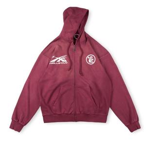 クロスボーダーアメリカのトレンディなブランド Hellstar Studios パーカー ジッパー ウォッシュド コットン フード付きスウェットシャツ メンズ レディース トレンド
