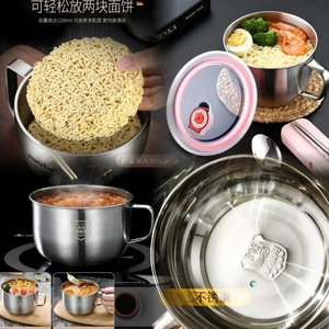 304 ステンレス鋼インスタントラーメン肥厚学生ファーストフード弁当箱蓋付き家庭用食堂インスタントラーメンスープボウルセット