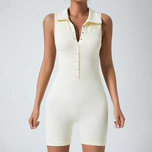 クロスボーダー Amazon シームレスボディシェイピングスポーツジャンプスーツボタンヘンリーカラーノースリーブヨガフィットネスジャンプスーツカジュアル