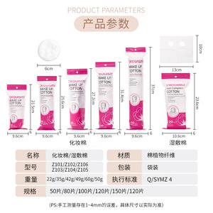 国境を越えて供給される、完全英語表記の150枚入り丸型コットンパッド、ウェットパッド、メイク落としコットン、ニュートラルラウンドコットン Z101