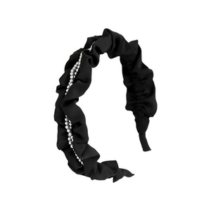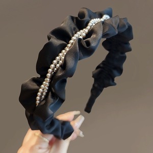 新しい黒のプリーツサテンヘッドバンド、パール付き、つば広洗顔、滑り止め、多用途ヘアピン、ヘアピン、ヘアアクセサリー