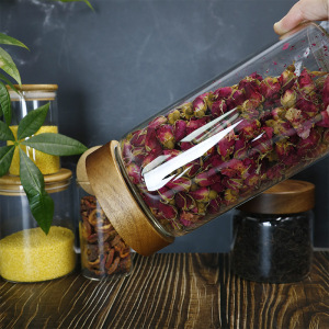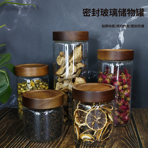 アカシア木製ガラスマルチサイズ保存瓶キッチン保存瓶穀物保存瓶食品グレードのガラス密封瓶