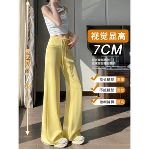 夏用女性用ミルクイエローマイクロフレアスポーツパンツ、ナローバージョンストレートシミターワイドレッグパンツ、リラックスドレープフロアレングスサザンパインパンツ