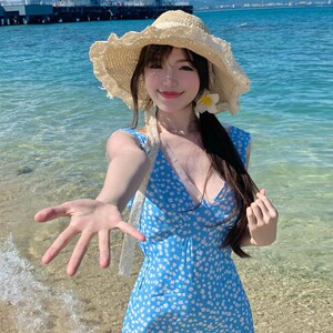 ティーブレイクフレンチフローラルVネックノースリーブドレス女性用夏の海辺の休暇気質Aラインユニークで美しい小さなスカート