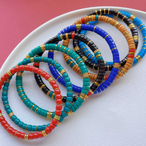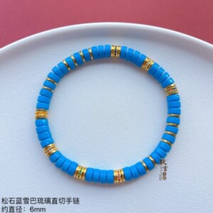 2024年辰年ネットセレブ人気男女兼用ブレスレットターコイズバイオレットブルーストレートカットピルスペーサーブレスレットなし