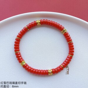 ♀SA6394 [レッドスノーバーレーズンストレートカットピルブレスレット] 1個