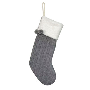 グレーのニットクリスマスソックス(両面編み)