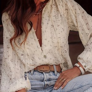 レディース エレガント 花柄 V ネック カジュアル シャツ プリント カジュアル シャツ