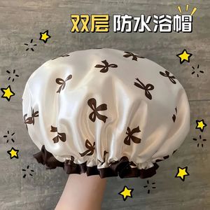 女性用二重層シャワーキャップ、防水入浴、家庭用キッチン、油煙防止ヘッドギア、女の子用ドライヘアマスク、特別なシャワーキャップ、新しいスタイル