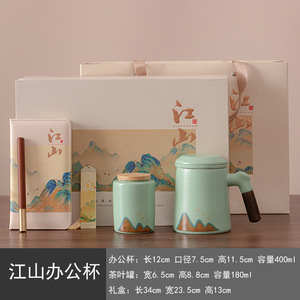 17-江山オフィスカップ+茶缶+ギフトボックス-シアン