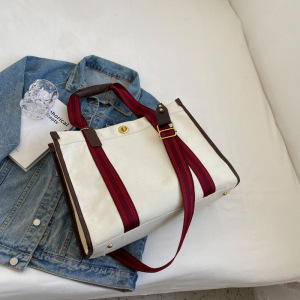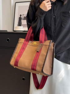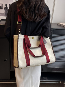 大容量キャンバスバッグレディース夏の新しい仕事通勤バッグ旅行ハンドバッグワイドバンドクロスボディトートバッグ