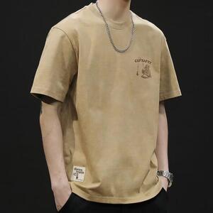 香港スタイルの漫画多用途プリントトップストレンディなブランド半袖 Tシャツメンズ夏ルーズカジュアルイン半袖 Tシャツ