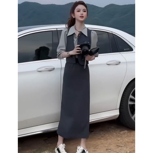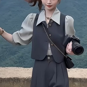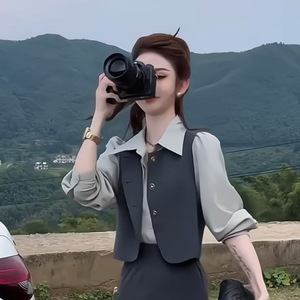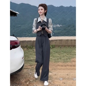女性のための気質年齢軽減スーツスカート 2025 春の新作長袖シャツベストズボン痩身 3 点セット女性のファッション