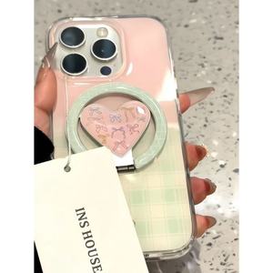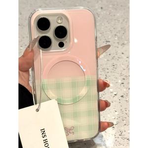 韓国イングラデーションチェック柄ラブ磁気ホルダーiphone16promax携帯電話ケースapple 15pro/14p