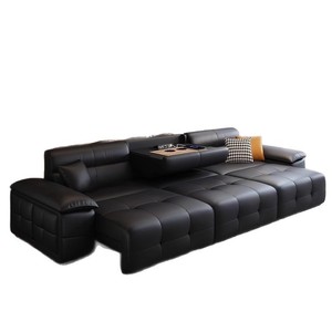 ワイヤレスリモコン伸縮電動ソファフリップコーヒーテーブル機能ソファベッドサイズレザーソファリビングルーム