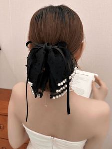 フレンチライトラグジュアリーリボンヘアピン2025後頭部かわいいクリップクリスタルペンダントハーフタイヘアピンヘッドドレス