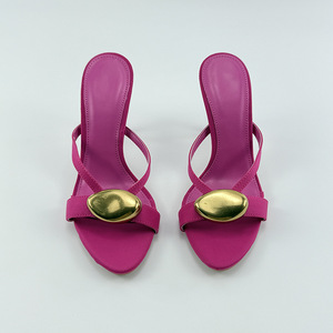 高跟凉拖鞋女2025夏季金属装饰露趾外穿时尚百搭简约细跟凉鞋